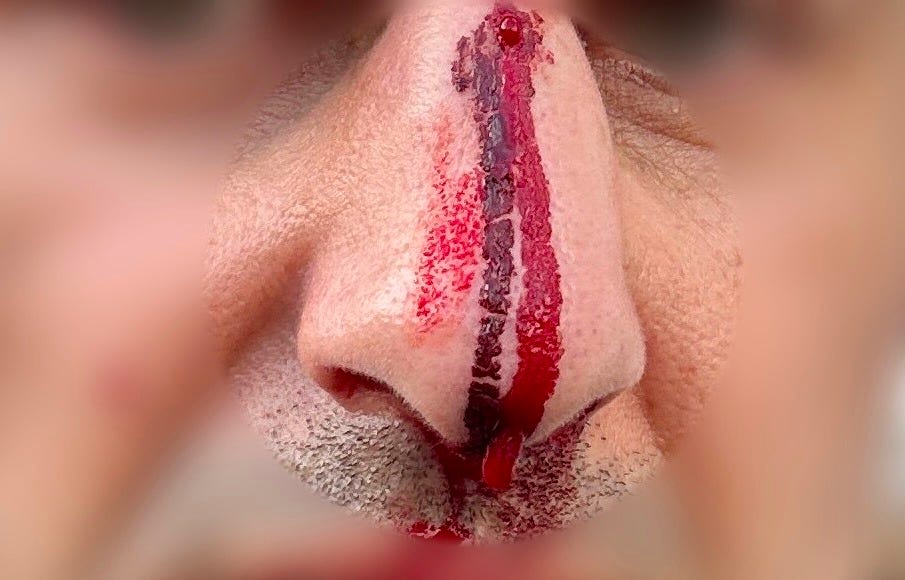 När jag ringer upp reportern i fråga berättar han att han följde demonstrationståget och filmade på avstånd när plötsligt flera demonstranter gick till attack mot honom. Det slutade med att han fick en spark i ansiktet och tvingades åka till akuten. Där konstaterade man att han fått en fraktur i näsbenet.